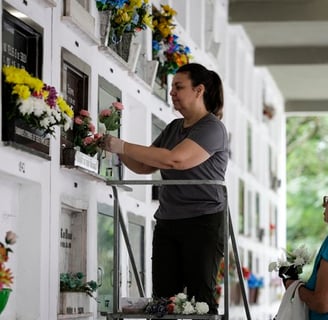 Acompanhada da sua mãe, Elsa Maria, 82 anos, a professora Patrícia Davila Iser, 52 anos, era uma delas. Na ala vertical do cemitério, onde estão dispostos os caixões em gavetas, mãe e filha limparam e floriram o espaço em homenagem a um tio e uma tia da família.