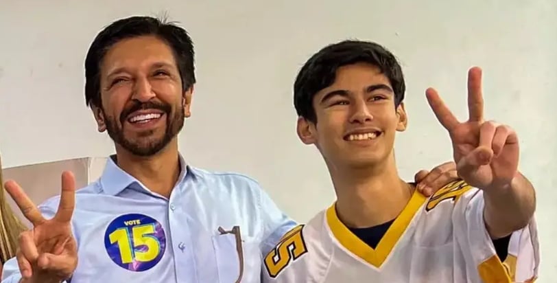 O atual prefeito e candidato à reeleição à prefeitura de São Paulo, Ricardo Nunes (MDB), acompanhou o filho do ex-prefeito Bruno Covas (1980-2021), Tomás Covas, em votação neste domingo (27).
